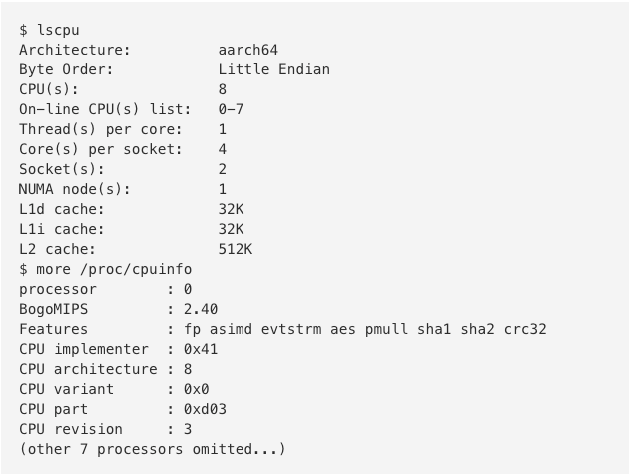 We have been running an ARMv8 server at miniNodes.com and if you look at the CPU info you will see the following: