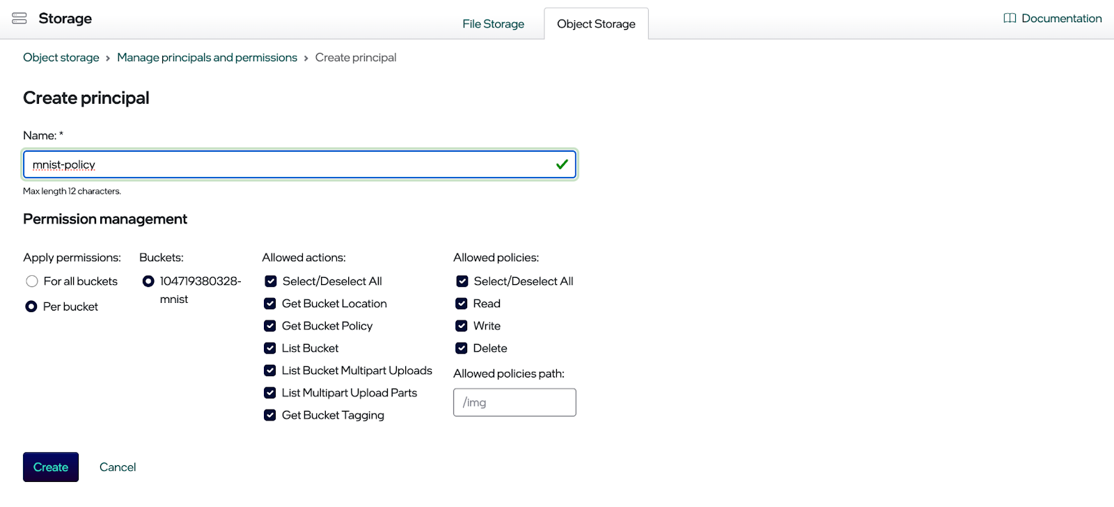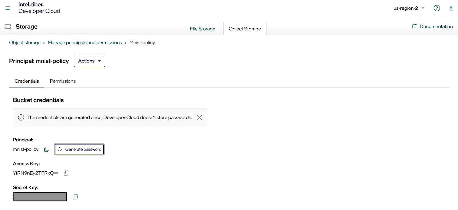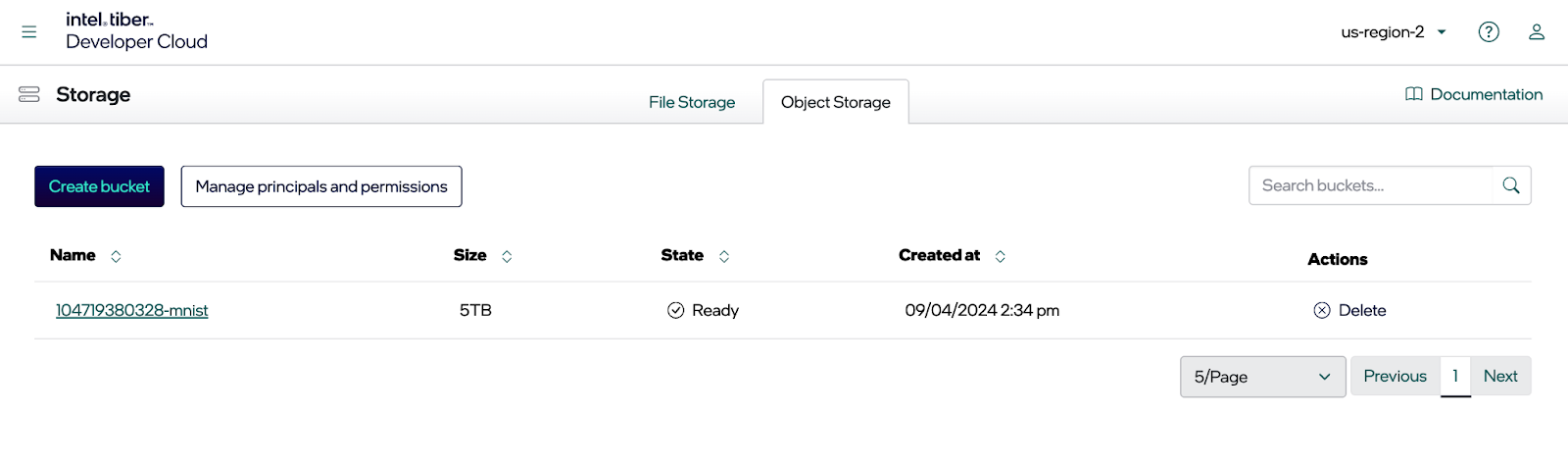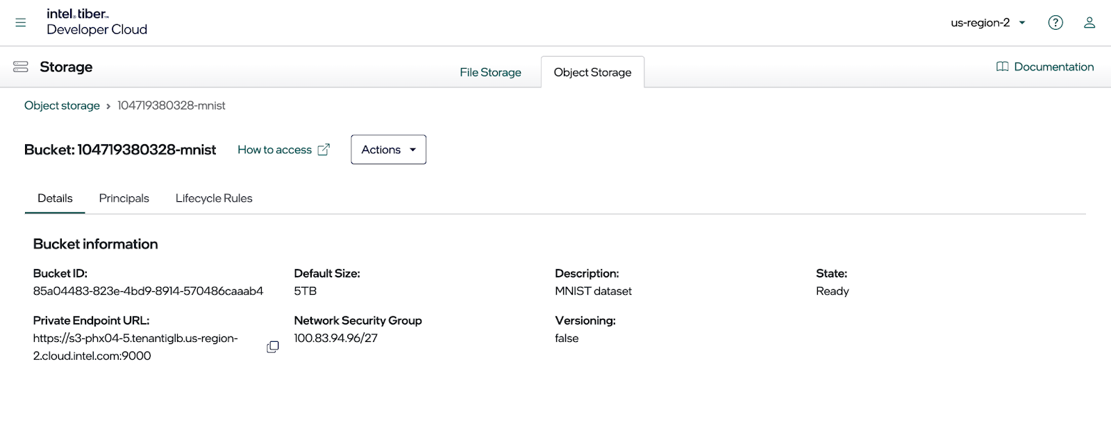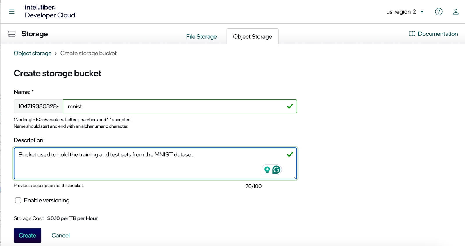 Enter a name for your bucket and enable versioning if needed. Once you click the Create button, you should see your new bucket, as shown below. This post will use the MNIST dataset and access it programmatically to train a model. Consequently, the endpoint is needed for accessing our new bucket, an access key and a private key.