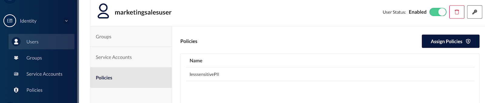 The marketing and sales user will only have access to the lesssensitivepii policy.