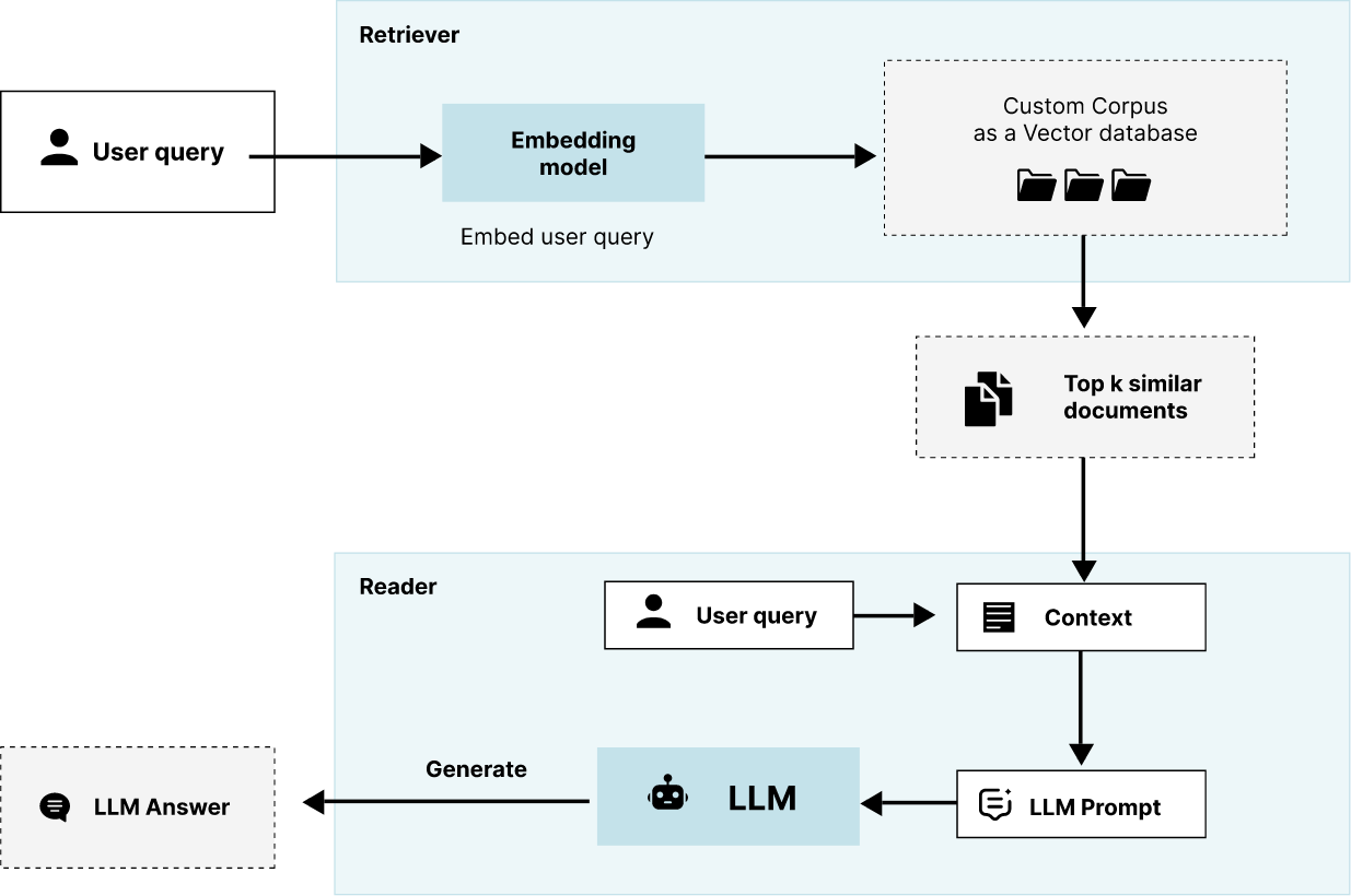 - The LLM has direct knowledge from your custom corpus.