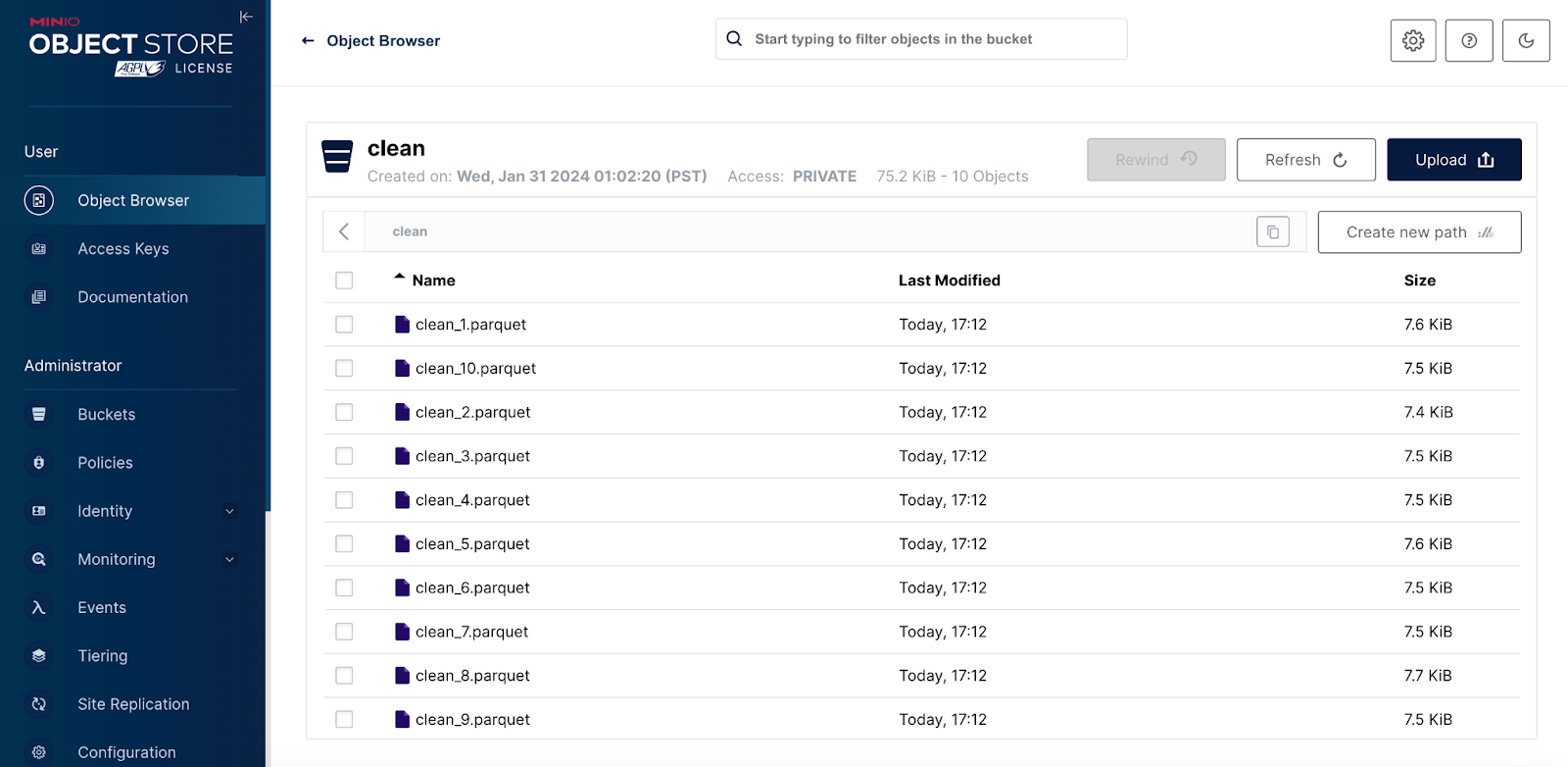Scrubbing and Uploading to MinIO: