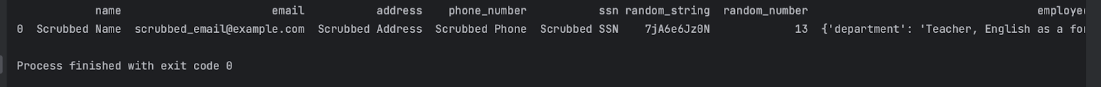 scrub_piifunction takes a Pandas DataFrame (data) and removes personally identifiable information (PII) fields such as name, email, address, phone number, and SSN.