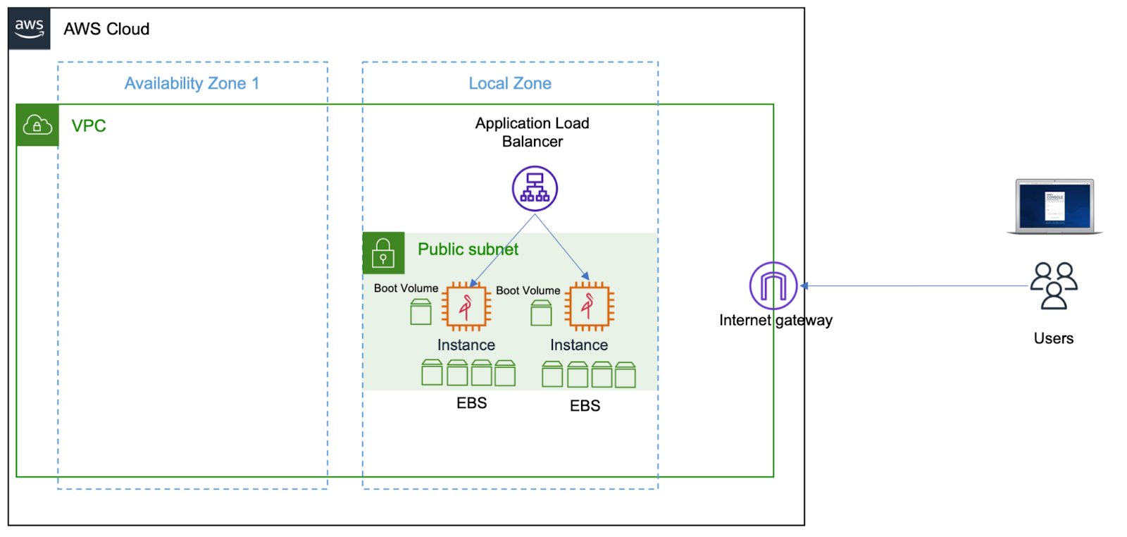 “In this architecture, the Distributed Mode of MinIO will be deployed on EC2 instances, within an AWS Local Zone. This architecture will have 2 nodes in the MinIO cluster and each node will have 4 GP2 type 8GB EBS volumes…In order to prepare the environment, it is essential to have a VPC with Subnets extended to a Local Zone. For this example, there is a VPC in the region on which the Local Zone depends with a CIDR of 10.0.0.0/16.”