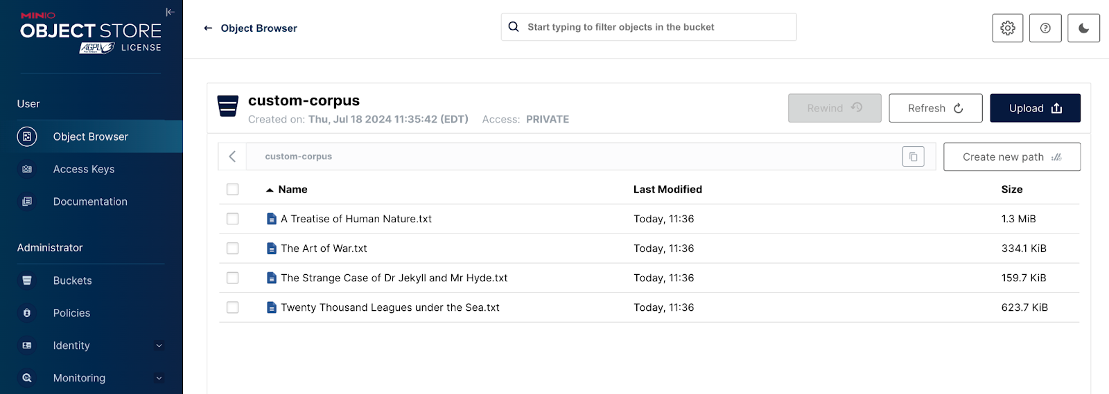 Setting up the Custom Corpus in MinIO