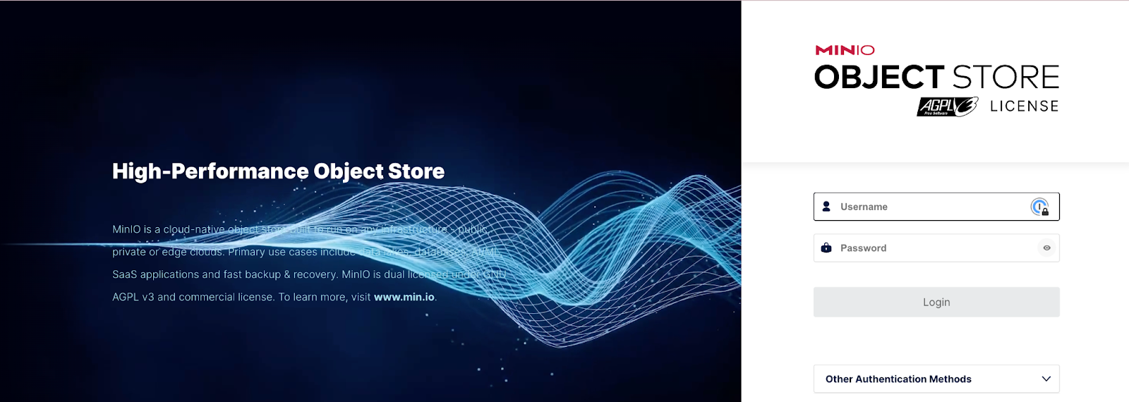 You can access the MinIO UI at http://127.0.0.1:9001. Log in with the username and password combination of minioadmin:minioadmin.