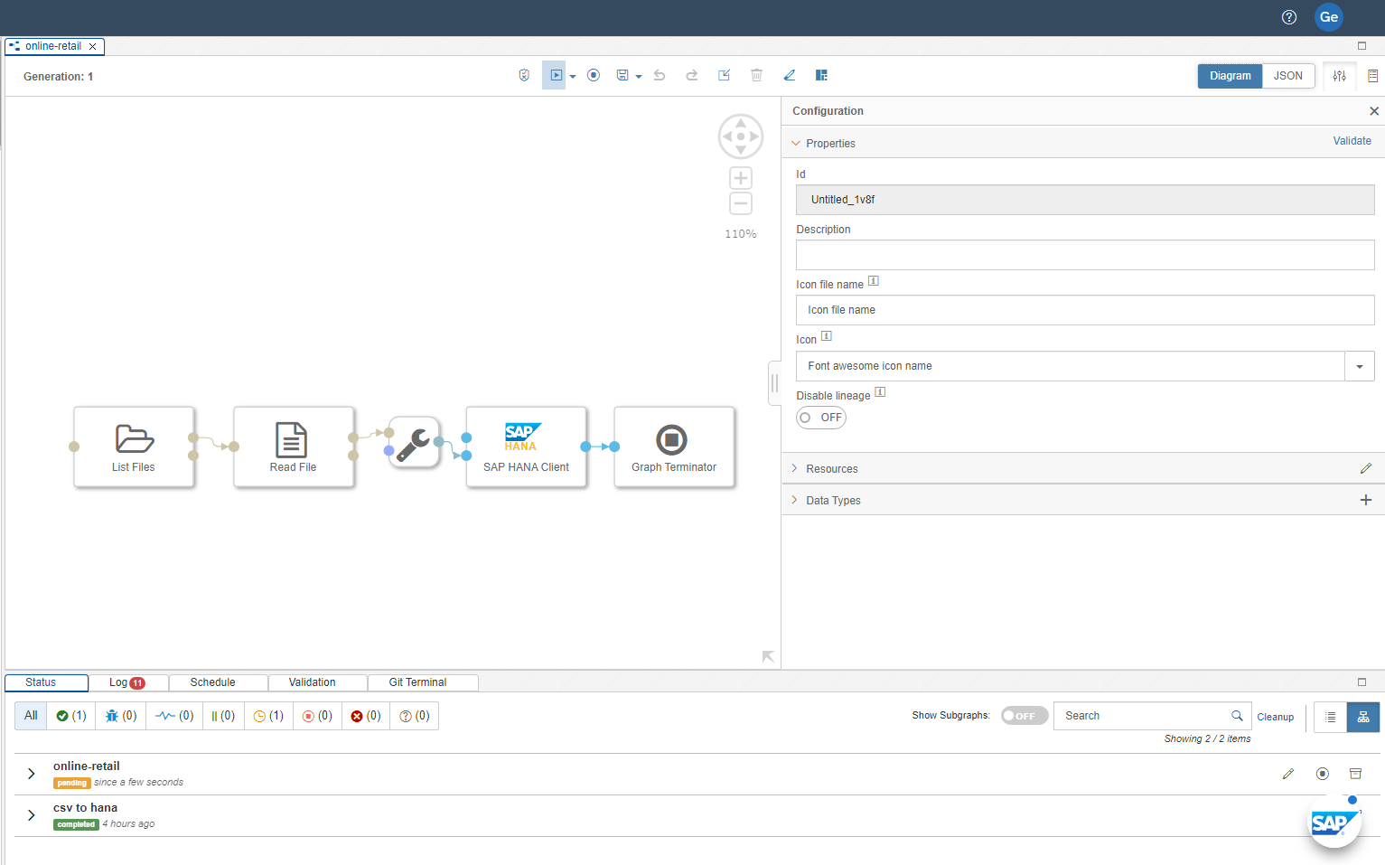 The next step is to create a graph, or pipeline, that consists of a number of operators that you configure to build a specific process and then connect using input and output ports. The combination of ease of use, power and customization really impressed me. There's way too much to SAP Data Intelligence Modeler to do it justice in a paragraph, please see the Modeling Guide for SAP Data Intelligence.