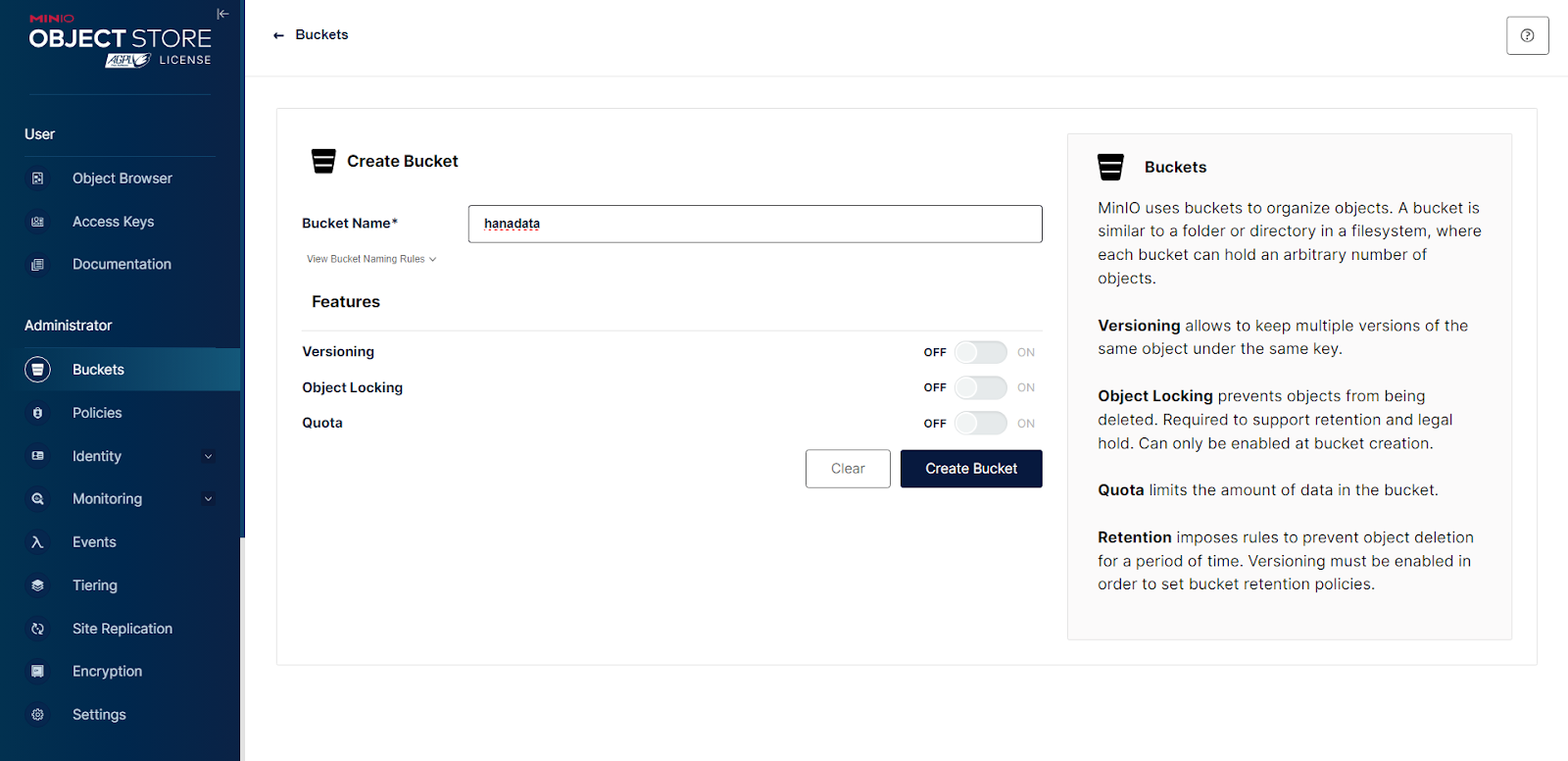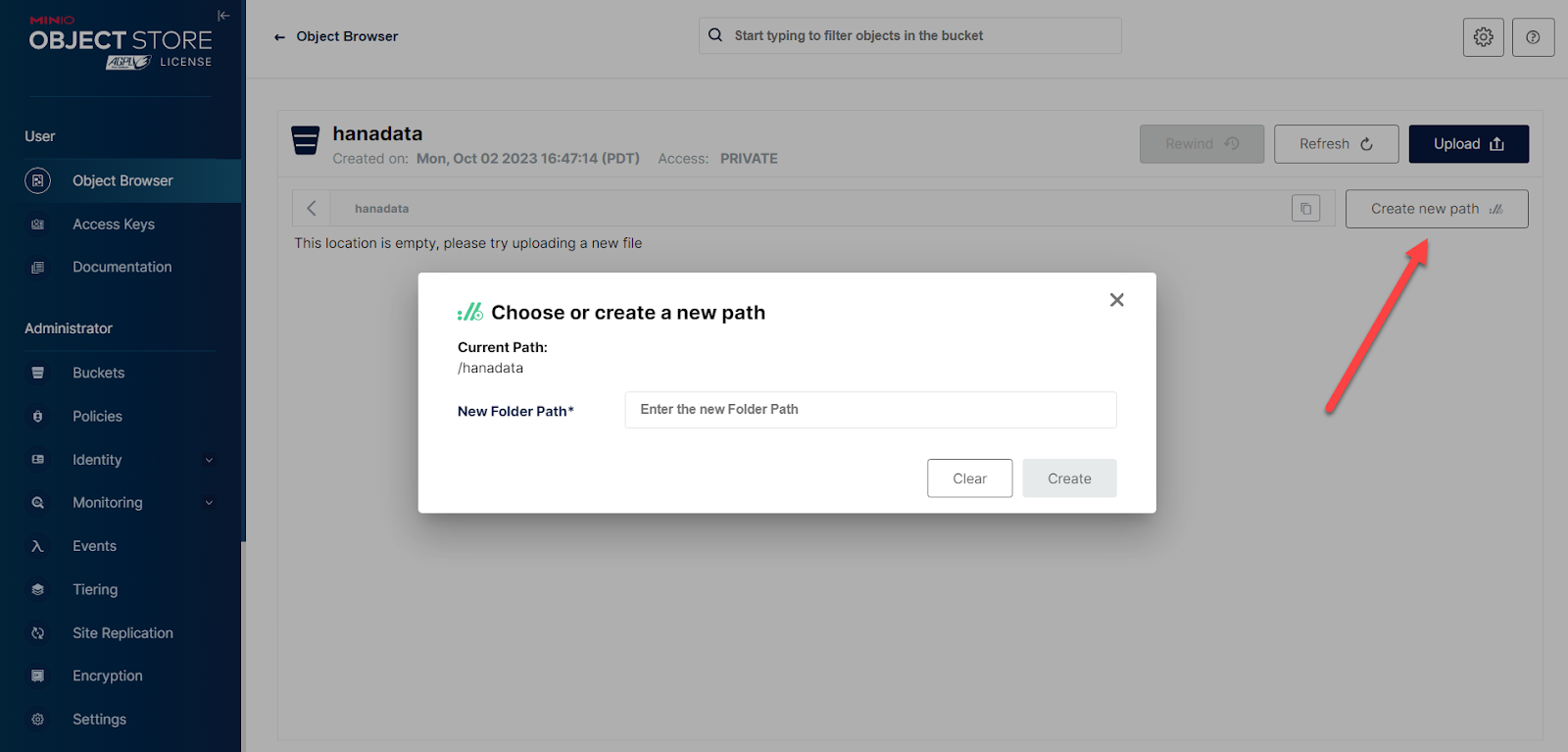 The first task that must be completed is to gather information about your MinIO bucket and data. You can import both individual or multiple .csv files or complete SAP schemas that have previously been exported from a SAP HANA Cloud, SAP HANA database.