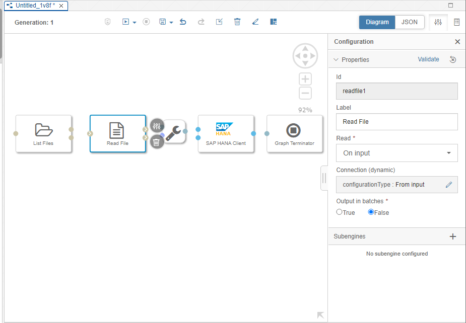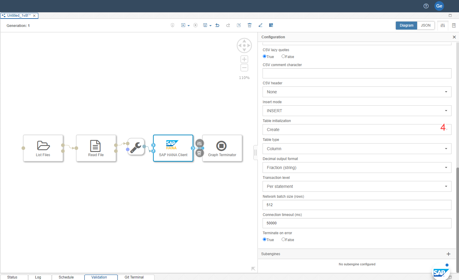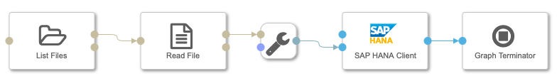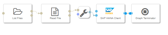 First, we will move List Files and Read File to the beginning of the graph, followed by File Converter, SAP HANA Client and Graph Terminator.