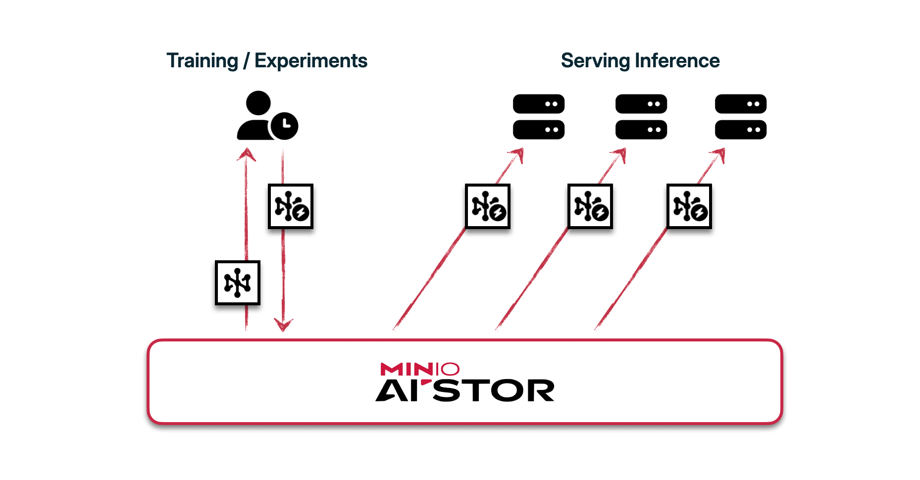 A growing requirement for teams is the need for an organized, secure, "single source of truth" for all their models and datasets. This is contrasted with the widespread adoption of public model and dataset repositories and APIs (most notably, HuggingFace). AIStor AIHub was created with this conundrum in mind. AIHub allows enterprises to create and consume their own dataset and model repositories on the private cloud (or in air-gapped environments) without changing a single line of code. In other words, by giving themselves a common model and dataset "zoo", organizations drastically reduce experimentation overhead, time-to-value with AI, and external dependencies for critical training and inference workloads.
