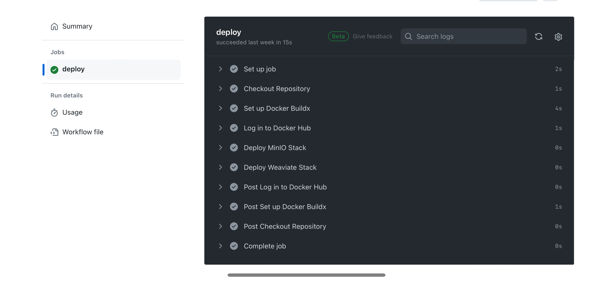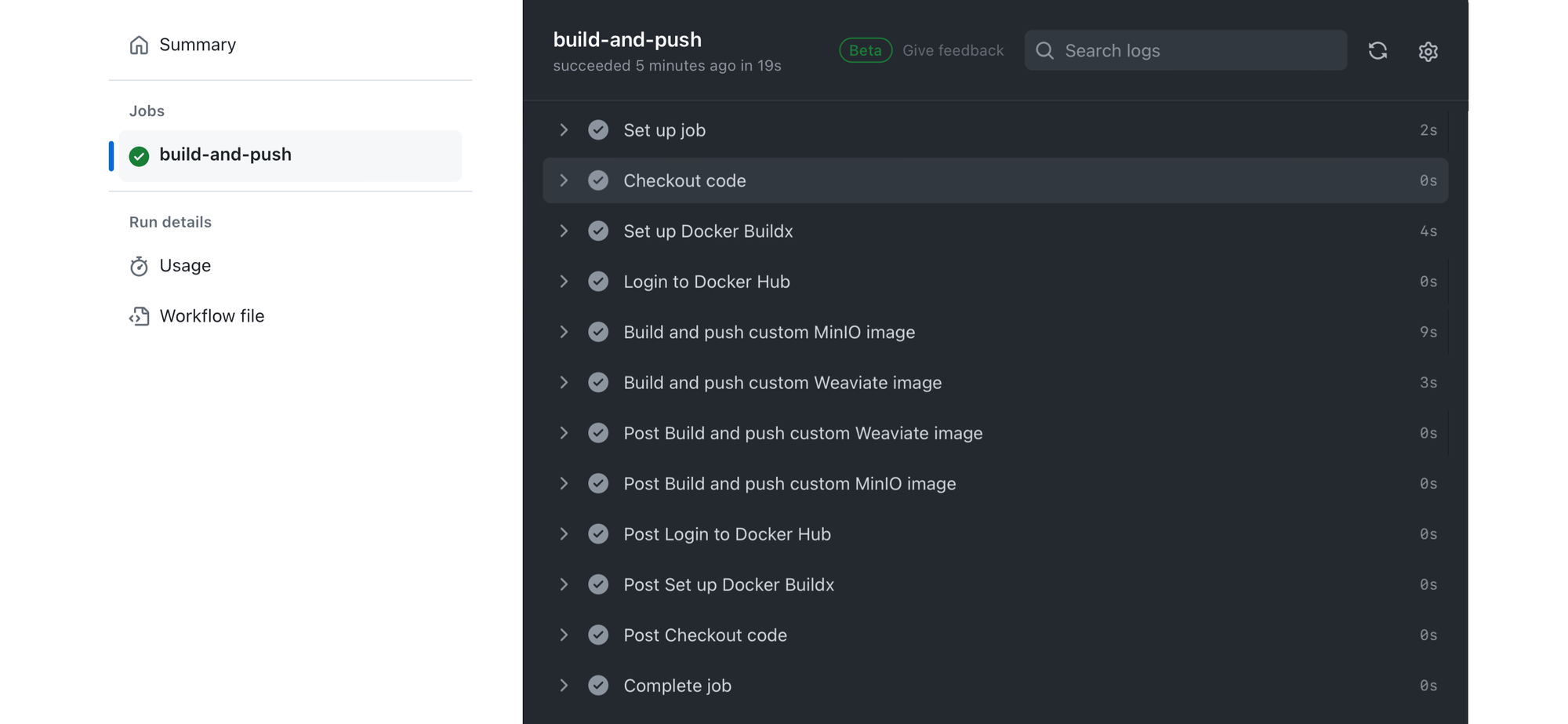 docker/build-push-action@v3to build the MinIO image from the specifiedDockerfilewithin the minio context directory. It is tagged and then pushed to Docker Hub, ensuring the image is available for deployment. The platforms argument specifies the CPU architectures the image should support, ensuring compatibility across different hardware setups. - Build and push custom Weaviate image: Similarly, this step is for building and pushing the Weaviate image with appropriate tagging and multi-architecture support.