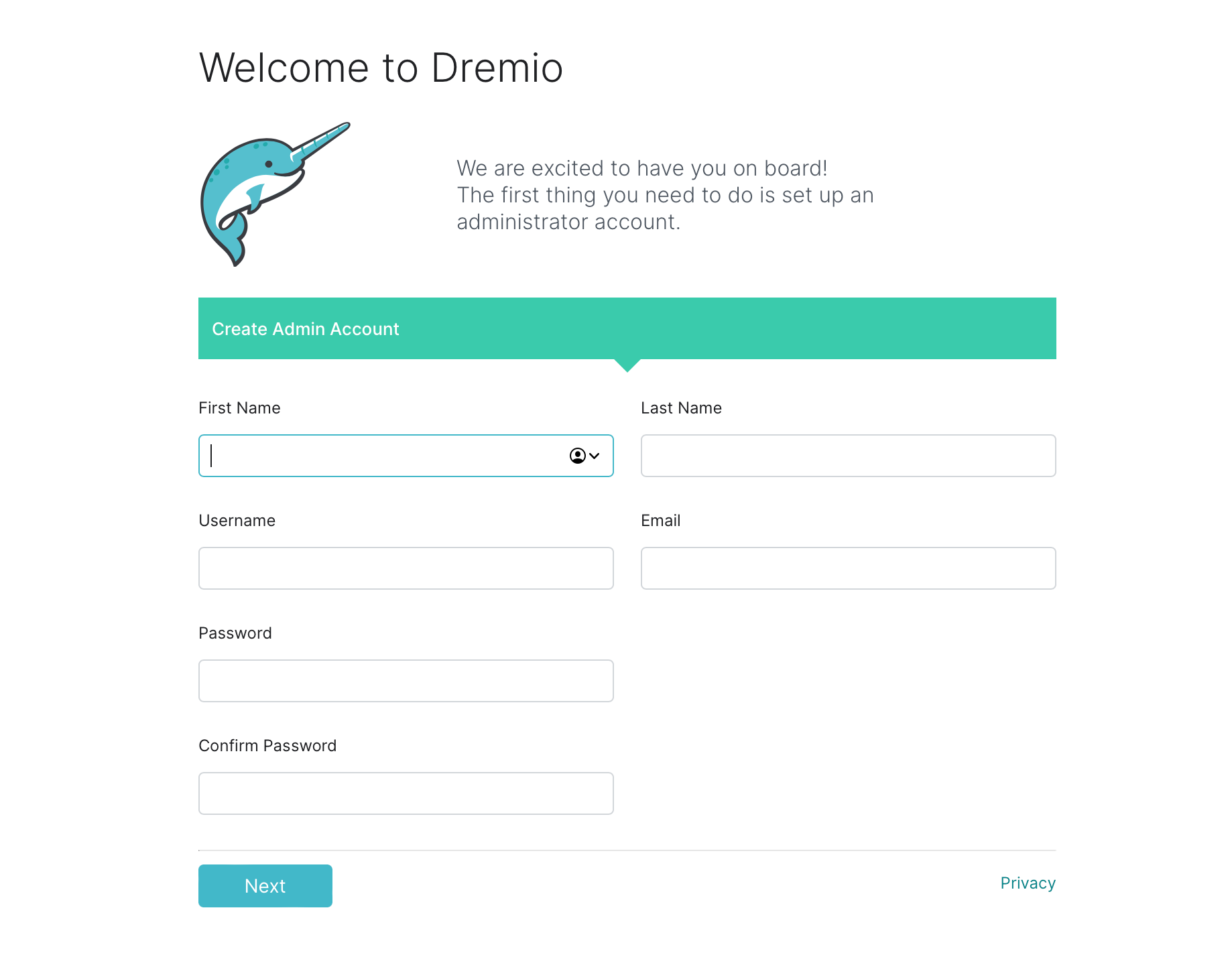 You will need to create a new user when you first launch Dremio