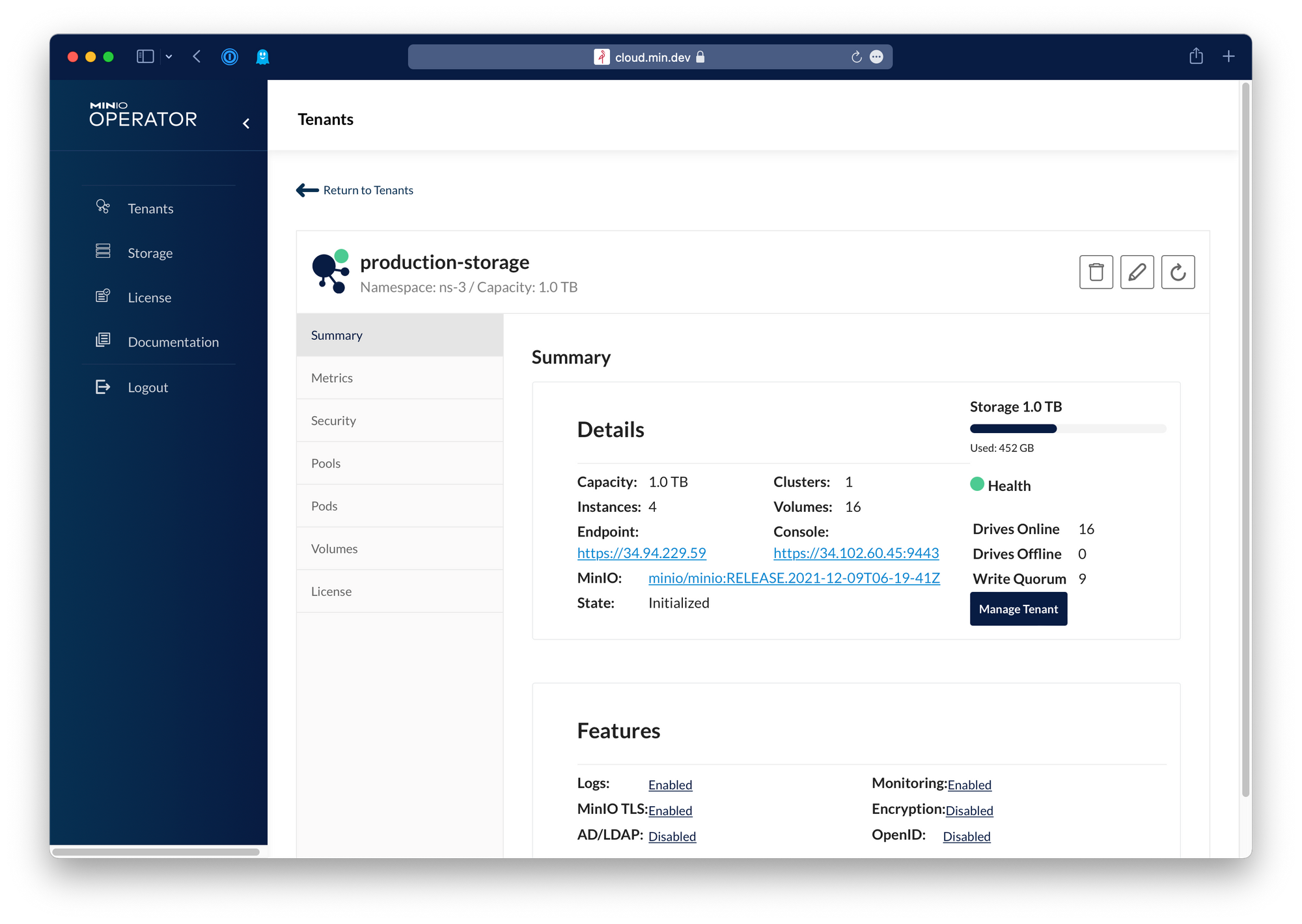 Use the kubectl minio plugin or the operator to deploy and manage multi-tenant object storage as a service. Script and automate using the plugin or use the Operator Console to create, deploy and manage object storage anywhere Kubernetes runs - including VMware Tanzu, Red Hat OpenShift and clouds like Microsoft Azure Kubernetes Service.