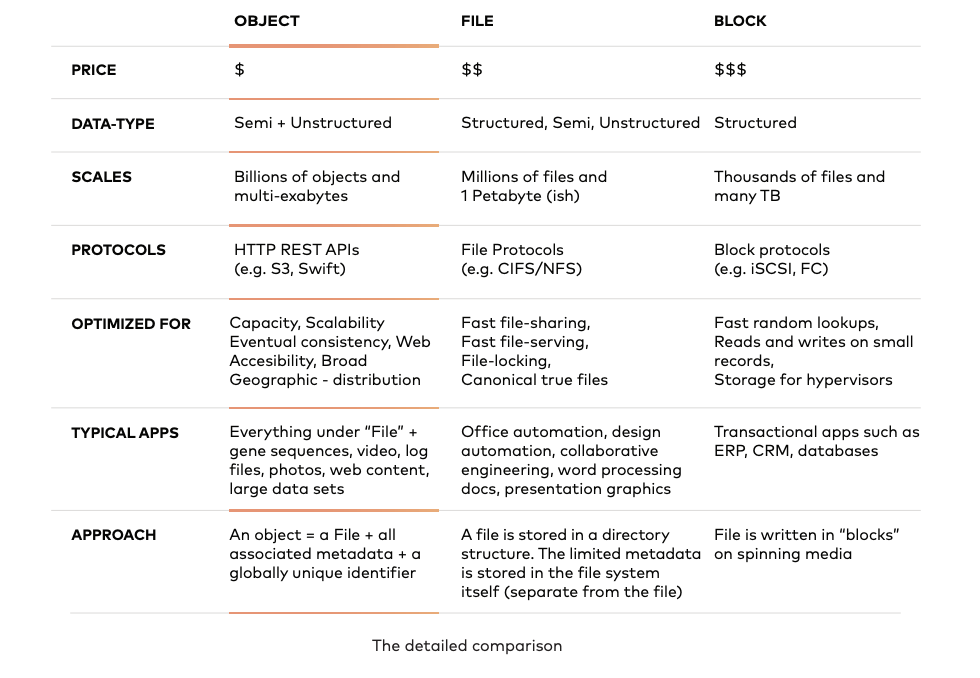 Basically, modern, high performance object storage has the flexibility, scalability, price, APIs, and performance. With the exception of a few corner cases, object storage will win all of the onprem workloads.