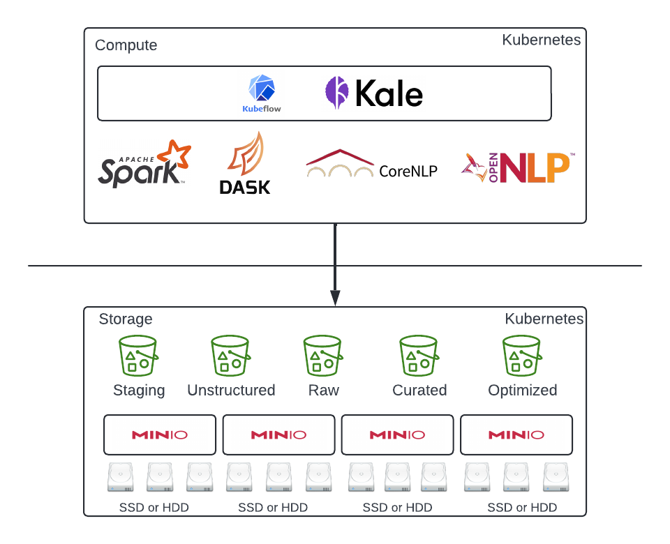 However, with data often distributed across public cloud, private cloud, and on-site locations, multi-cloud strategy has become a priority. Kubernetes and Dockerization have leveled the playing field for software to be delivered ubiquitously across deployments irrespective of location. MinIO has taken storage to the next level by adopting these advancements. MinIO clusters with replication enabled can now bring the knowledge base to where the compute exists. And as far as the compute goes, we can apply AI principles using NLP and NLU on the knowledge base and continuously improve the content to be consumed and delivered to the customers’ queries through phones, virtual assistants, and bots. Integrating Kubeflow and Kale pipelines, data analysts and scientists in the background implement continuously learning AI models on the data captured based on user habits, and optimize responses and content to efficiently serve the frontend components.