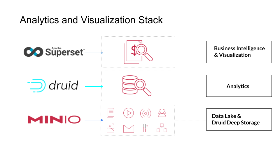 In this blog post, we introduced a group of cloud-native applications: Apache Druid for analytics, Apache Superset for visualization and MinIO for S3 deep storage. This simple demo is the start of building a cloud-native analytics and visualization stack, and can be extended with Apache Spark for ML or Jupyter for data science.