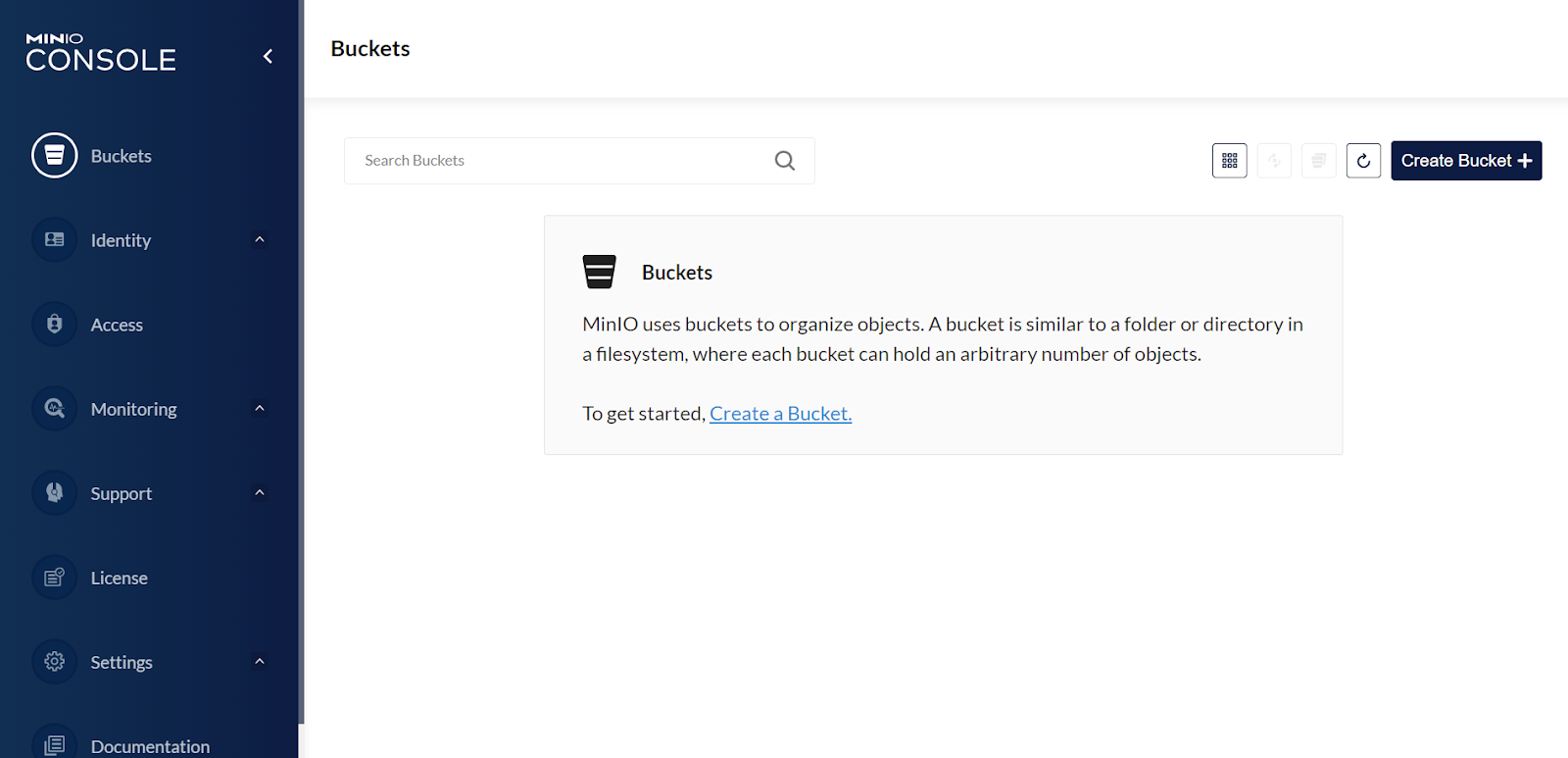 The first time you log in, you’ll be taken to the Buckets page.