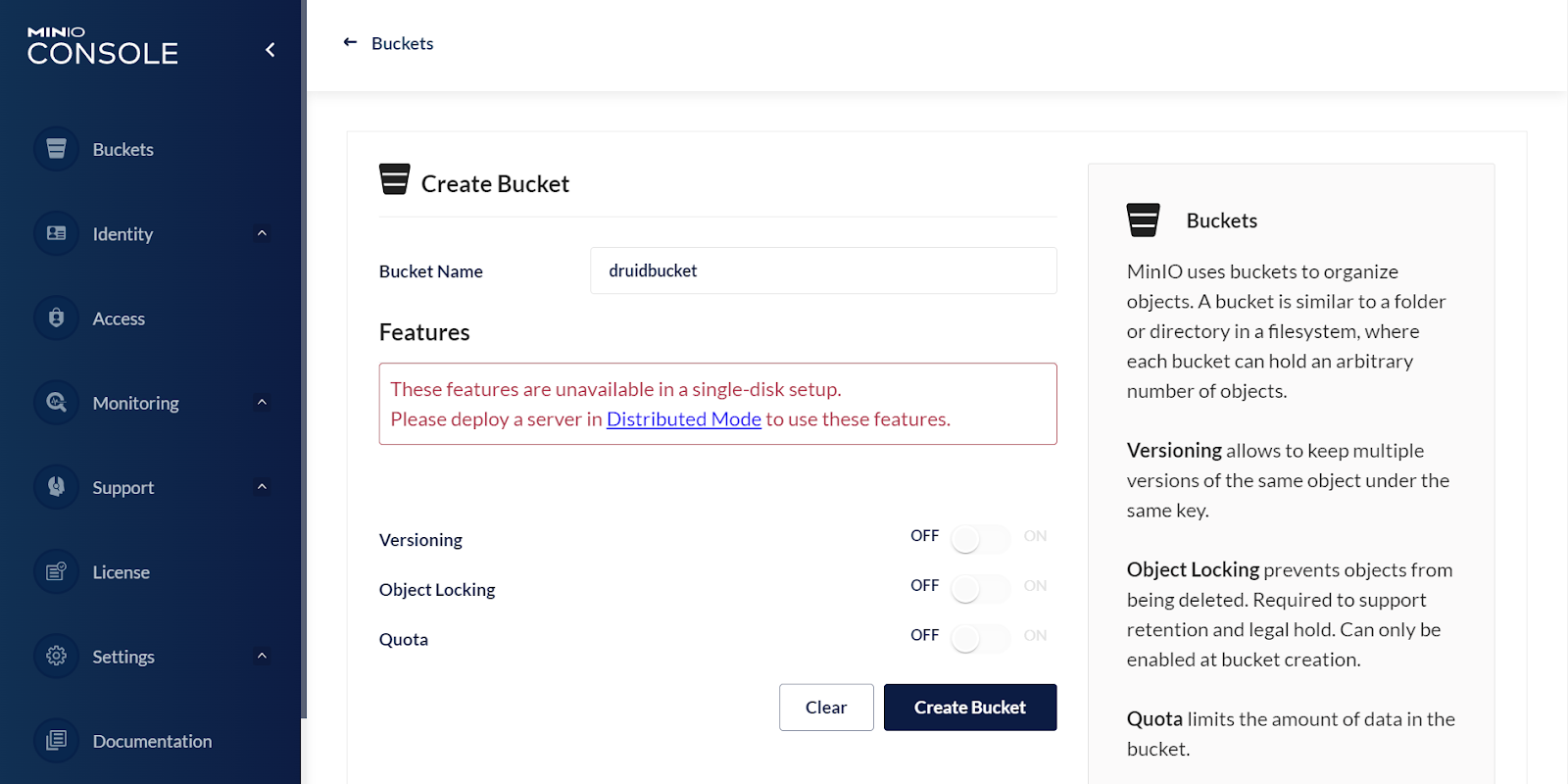 Create the bucket druidbucket.