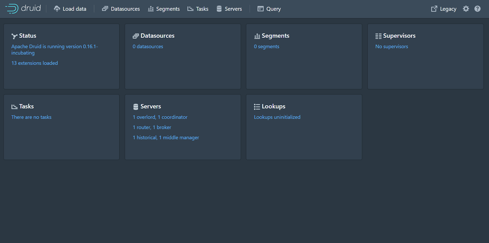 Open a browser and load the Druid web interface at http://localhost:8888.