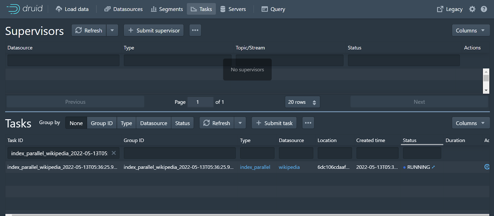 From here, you could run queries against the data in Druid and get lightning-fast responses. You can run queries via the web GUI or the API. Druid finds itself behind many a dashboard because of its ability to provide excellent query performance over massive amounts of data at scale.