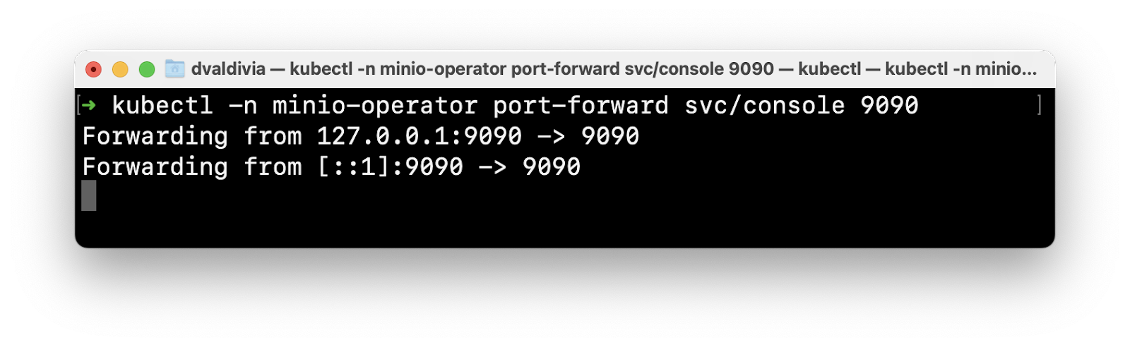 All of these steps assume MinIO is running in the ns-1 namespace and running on port 80. If you were running the tenant with TLS you'd use port 443.