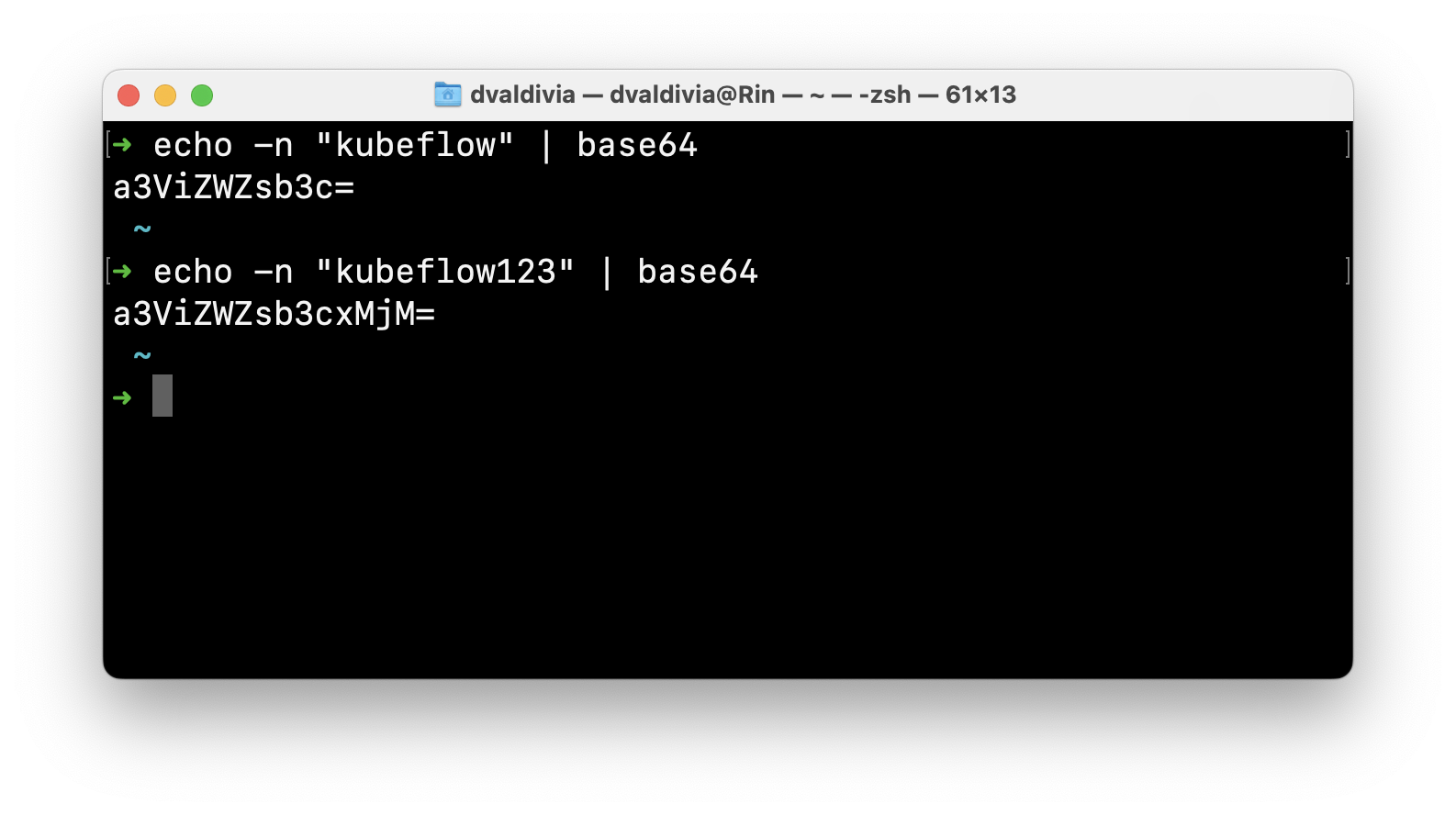 We will update the secret that holds the credentials to MinIO, however these are meant to be base64 encoded, so you can encode them with shell: