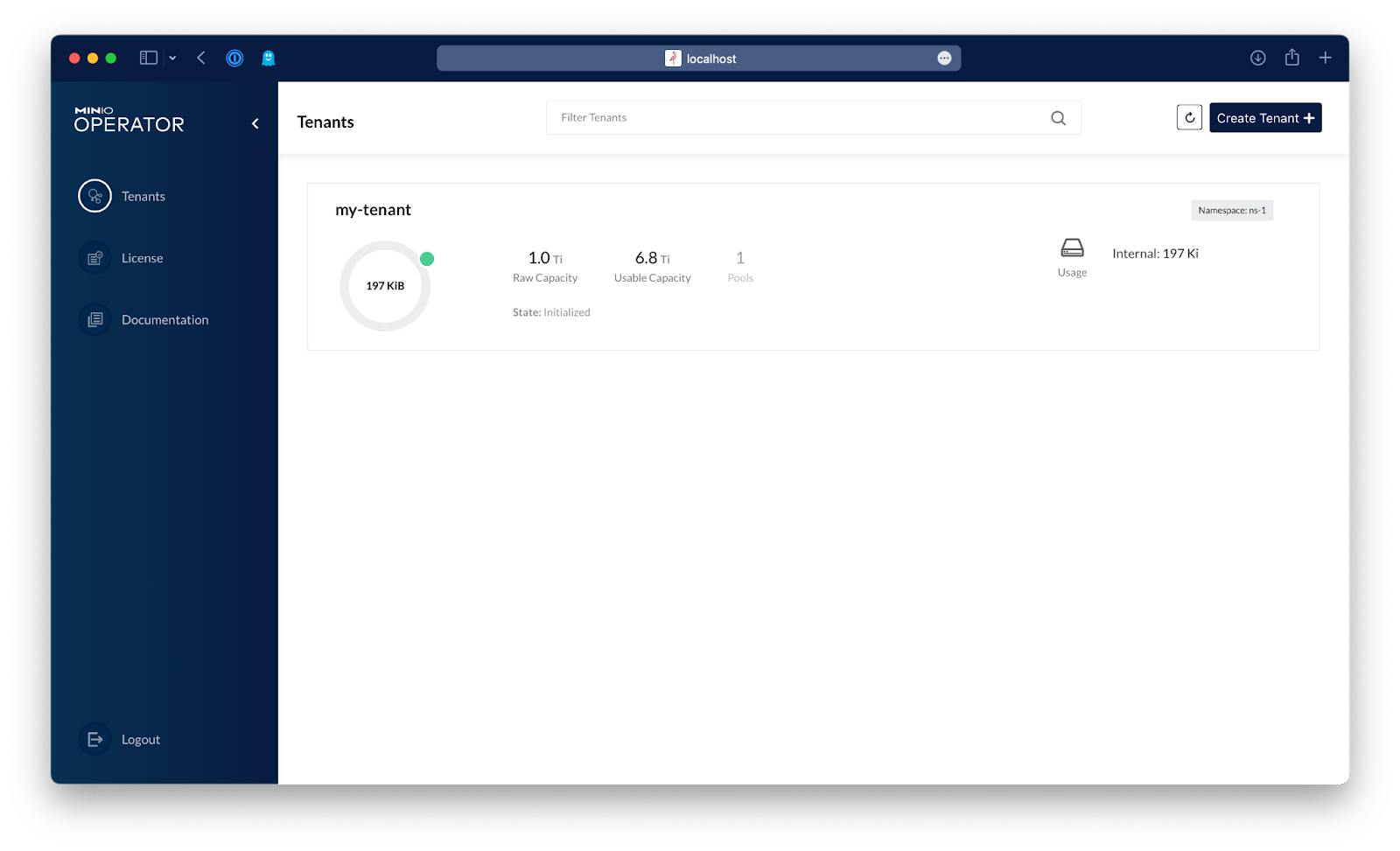If you go to MinIO Operator, you can see the tenant now has data: