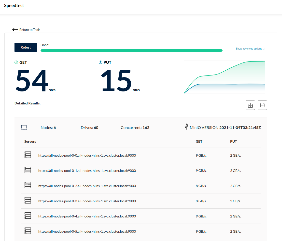 It is also be possible to run Performance Test from MinIO Console, the browser-based graphical interface for configuring, managing and reporting on MinIO clusters.