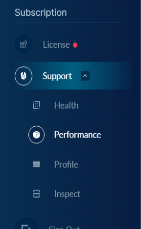 In the navigation bar along the left, scroll down to Subscription, click to show Support options, then click Performance.