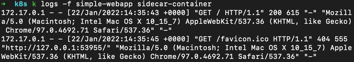 kubectl logs -f simple-webapp sidecar-container