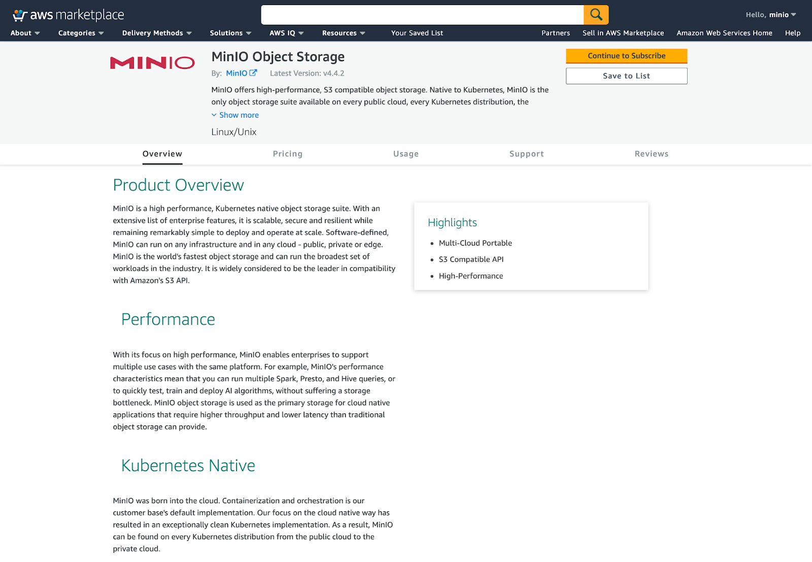 Our goal in adding MinIO to the AWS Marketplace was to make it even easier for customers to run MinIO inside the biggest public cloud - gaining operational and economic benefits in the process.