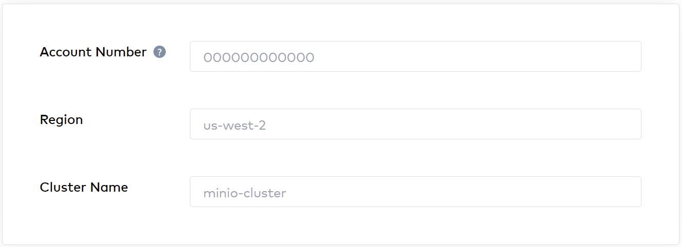 To get started, you are going to need three basic configuration parameters for your cluster: Entering them below will populate the necessary commands to deploy MinIO through EKS.