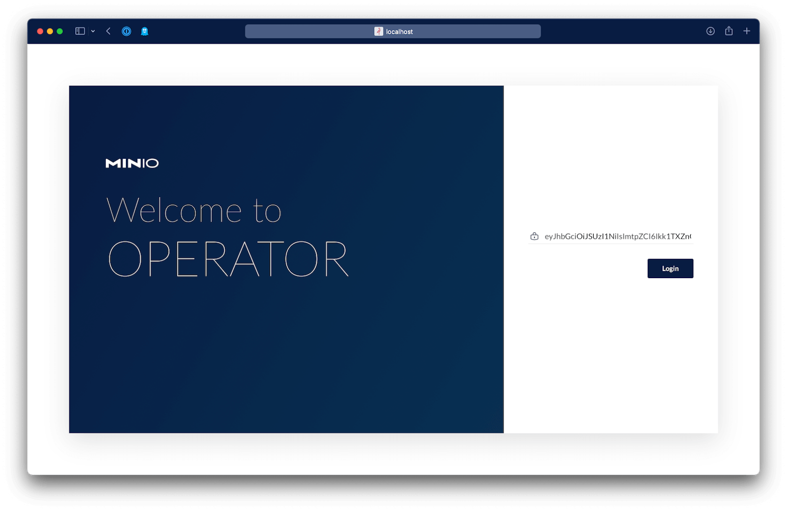 kubectl apply -k github.com/minio/operator/resources/\?ref\=v4.3.73.1 Get the JWT to login to Operator UI