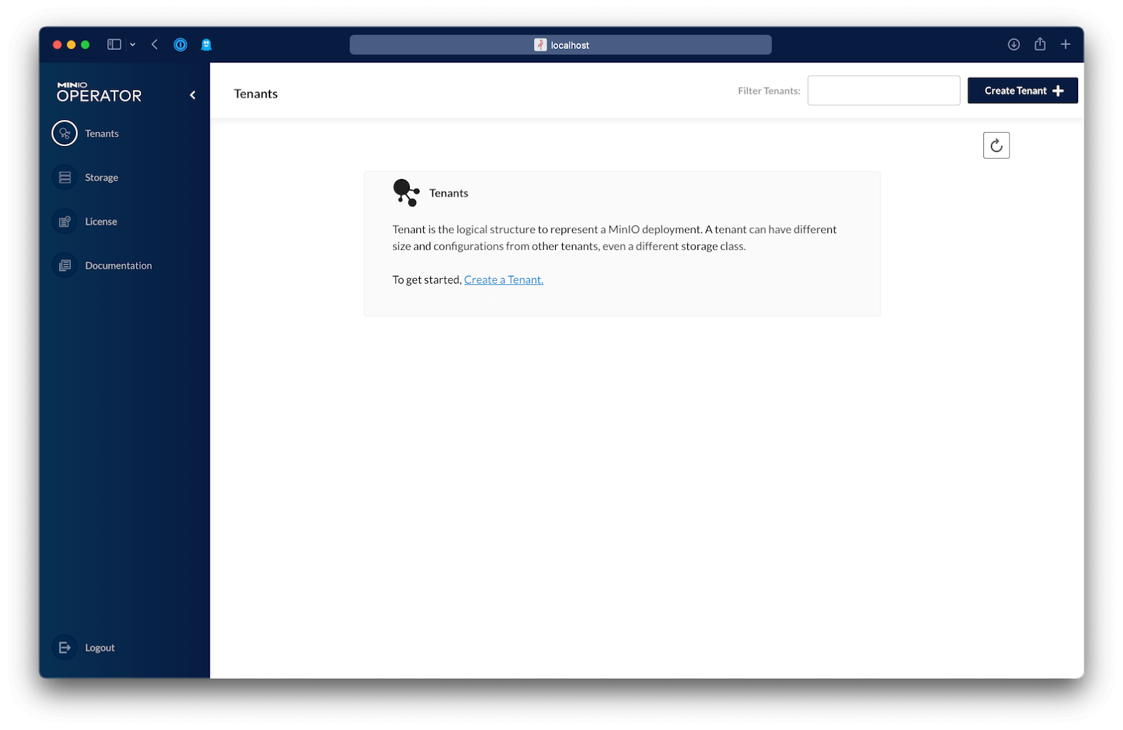 Go to http://localhost:9090, enter the JWT from the previous step and create a tenant.