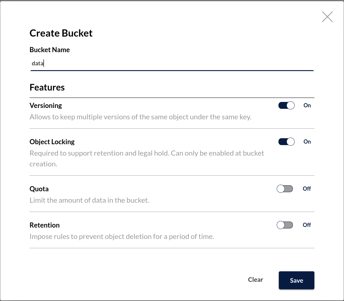 I'm also going to enable Object Locking so I have the option to set retention settings on this bucket later. The AWS S3 spec requires enabling Object Locking at bucket creation, so we have to do it here.