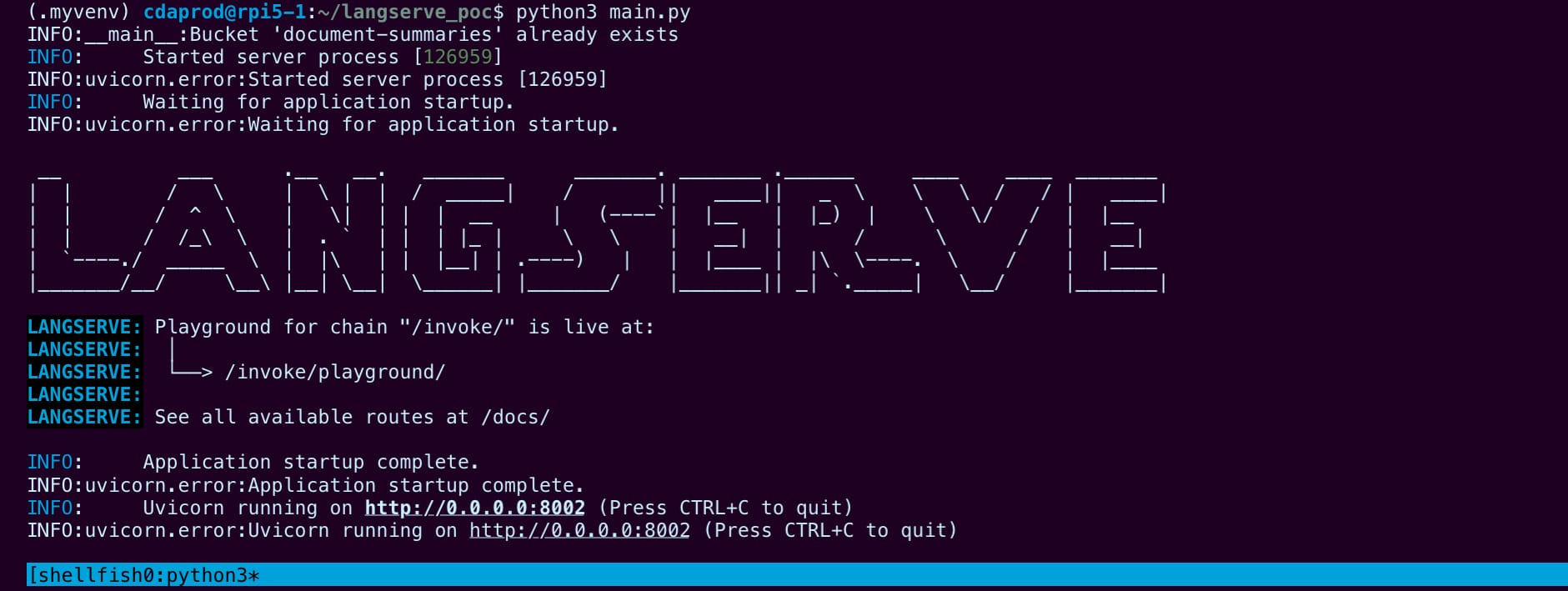 Launching the LangServe Application via Uvicorn