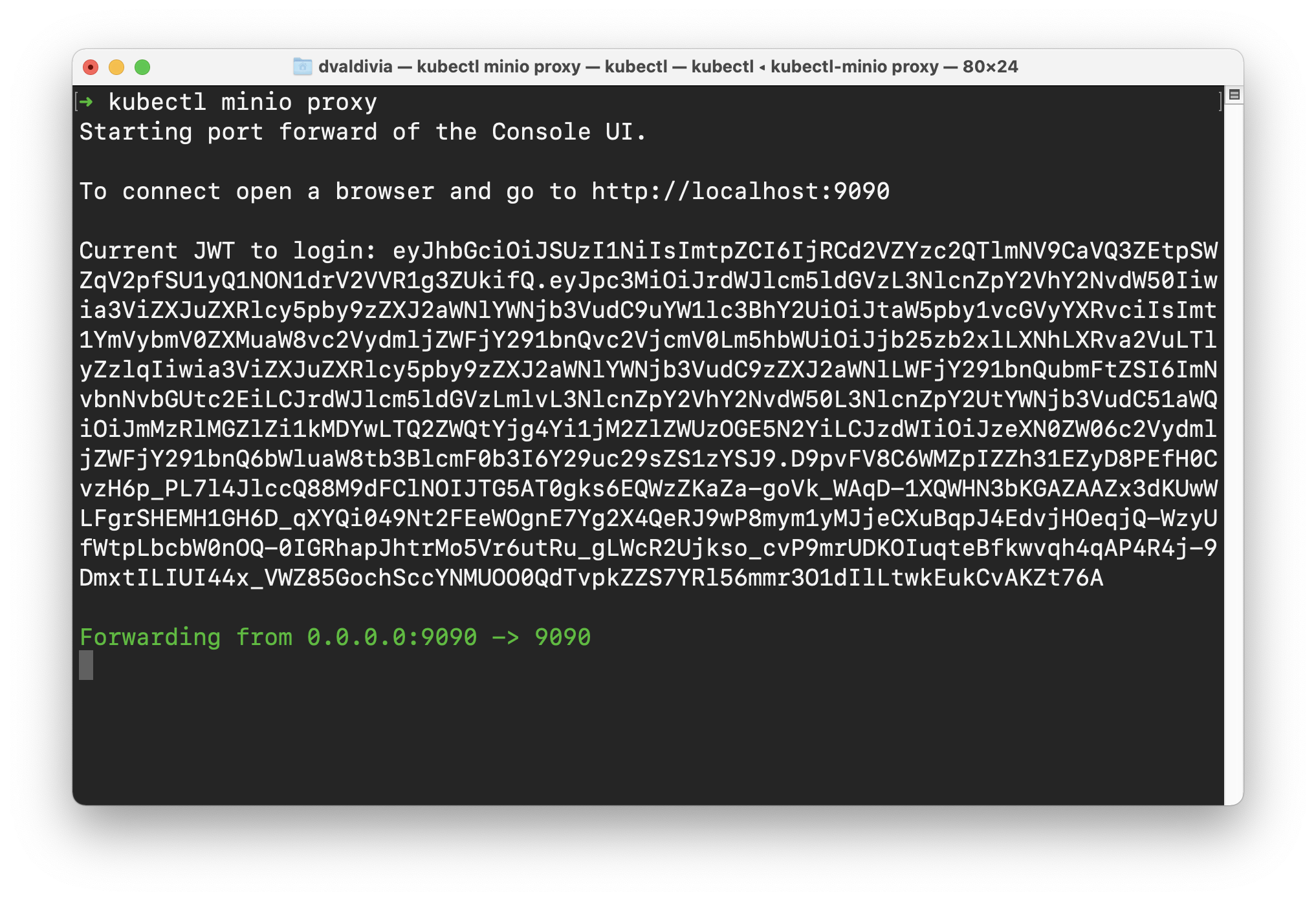 As you can see, it's telling you to visit your local browser's http://localhost:9090/login and it's also telling you the JWT to access the Console UI