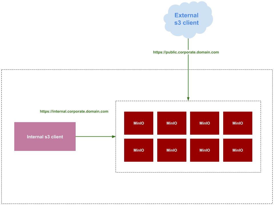 To accomplish this, you will need a MinIO tenant deployed inside the Kubernetes cluster that is accessible by both internal and external clients, and not only that, they will use different domains. Let’s do it.
