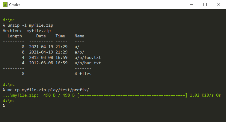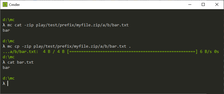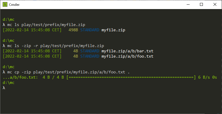 λ mc cp --zip —-recursive play/test/test.zip/folder/ ./extracted/
