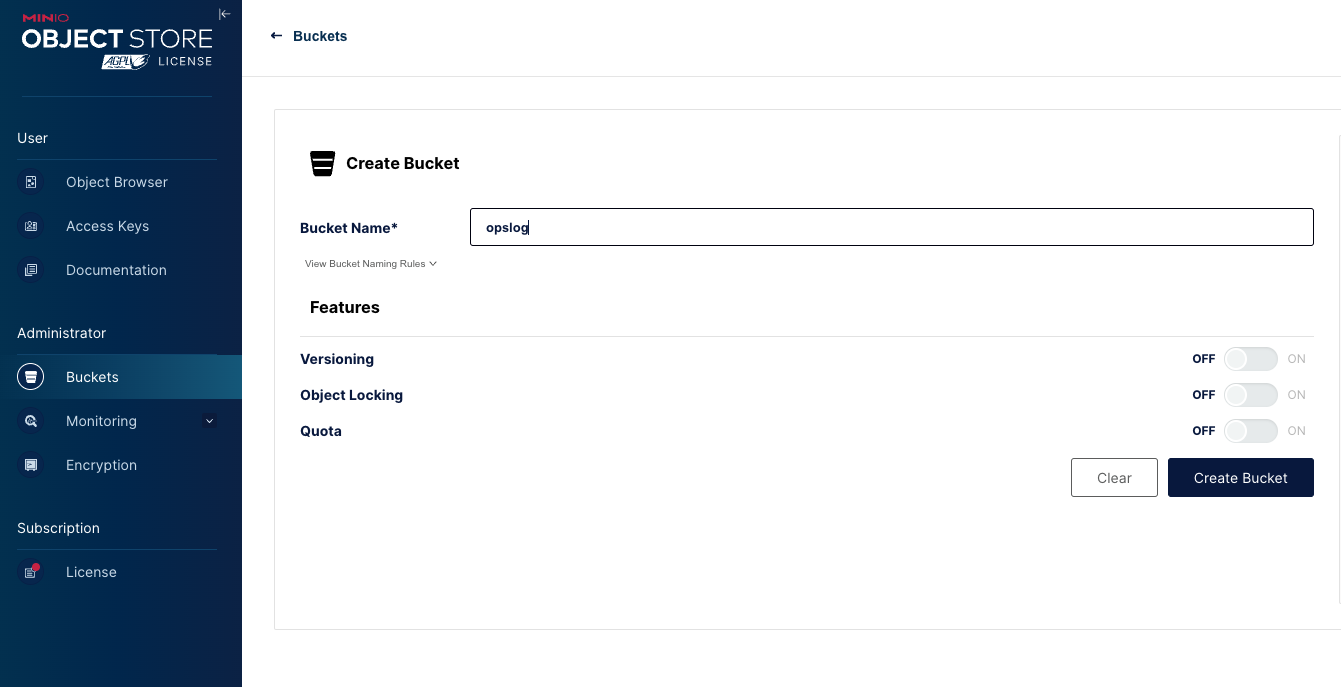 Create a bucket to store your snapshots. Do not create subfolders as these are not supported by Ops Manager. You’ll need to first create a bucket for your Snapshot Store.