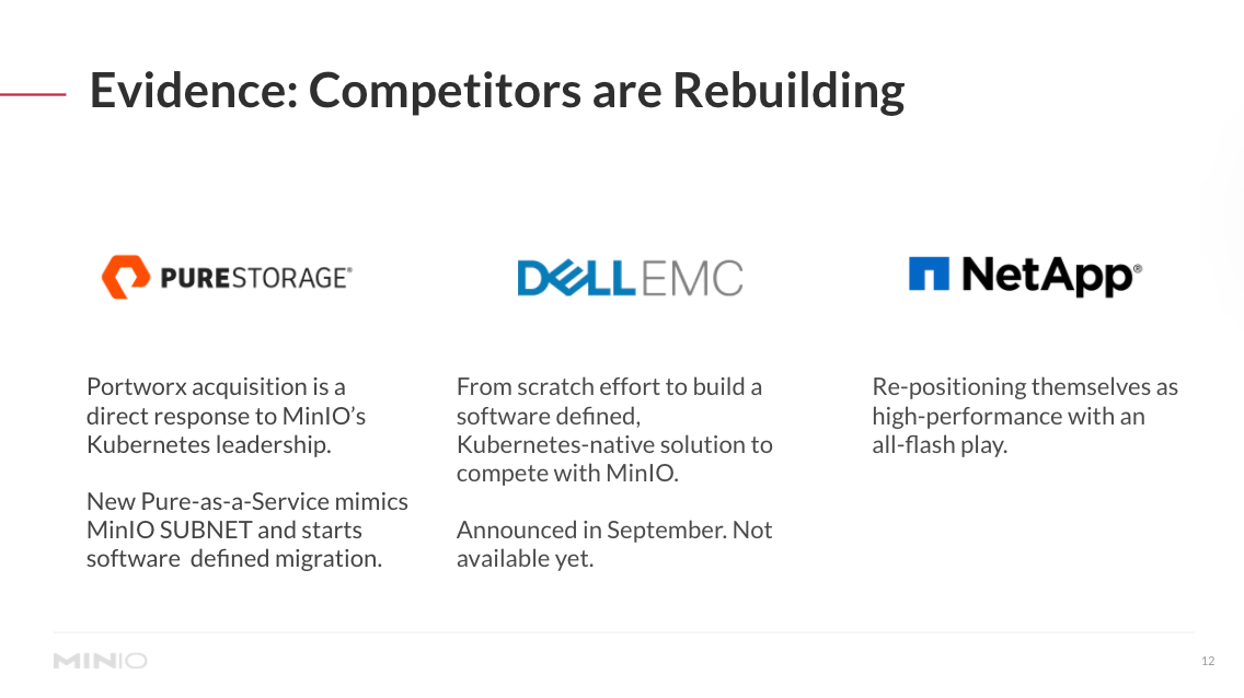 We really enjoyed putting Slide 12 together. The fact that we are influencing the orbits of Pure, EMC and NetApp tells you something about the gravitational pull of MinIO. It is growing by the week.