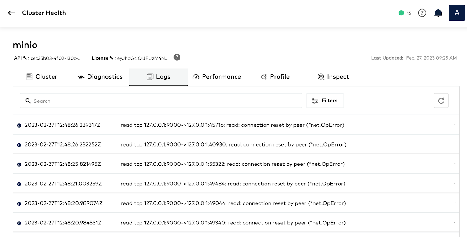 At the end of the operation, you will receive a link to SUBNET that is only accessible by your team and the MinIO Engineers via the analysis report in the portal.