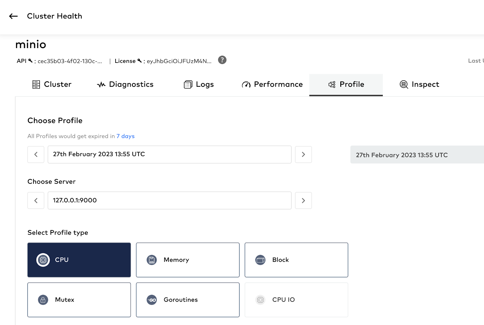 You can run MinIO’s profiling tool for just 10 seconds and get all the information available for you to see and share with us on SUBNET.