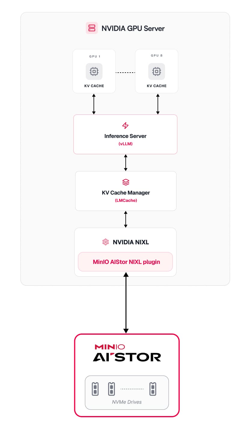 - AIStor’s NIXL S3 plugin enables KV cache movement to MinIO AIStor cluster