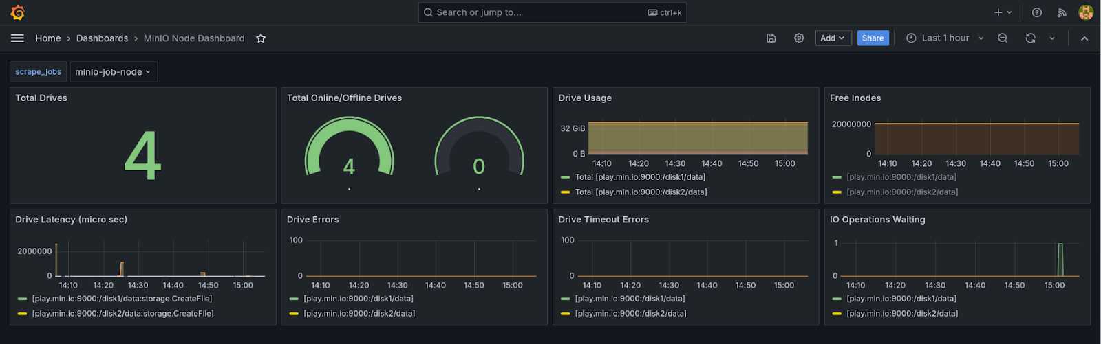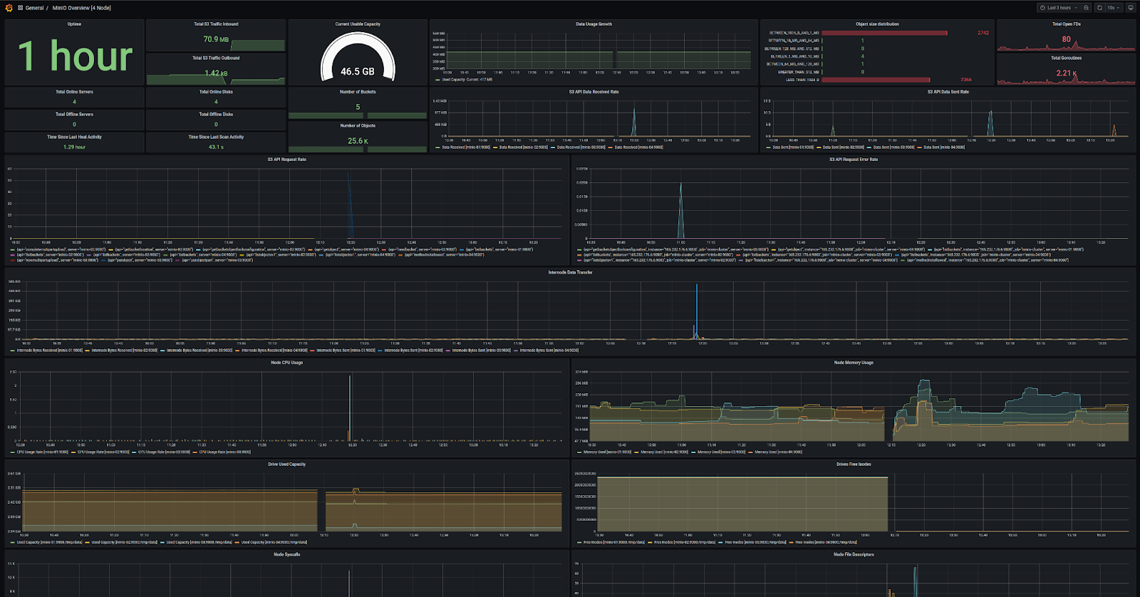 But when managing data at such an immense scale, it is impossible to look at individual logs or nodes to try to make sense of it. What you need is a holistic view of the state of your data and the overall cluster infrastructure. And one of the most common pieces of infrastructure that often needs to be monitored and replaced if needed are hard drives (SSD, NVMe, etc.). Hard drives fail due to a variety of reasons and MinIO is perfectly capable of running at full speed even with more than a couple of simultaneous drive failures, depending on the Erasure Code calculations, without breaking a sweat.