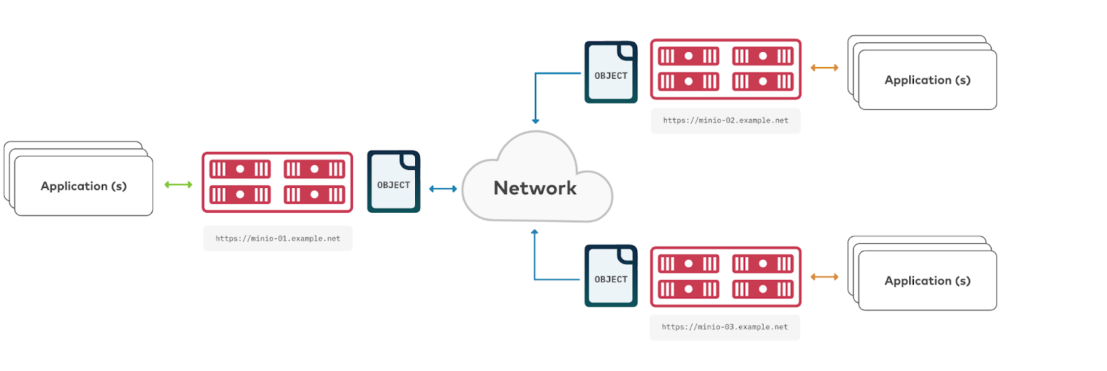 They run two MinIO deployments in separate data centers. Data between the two is replicated using active-active replication, allowing MinIO to be highly available. Given the critical nature of the bank’s financial data, an ironclad requirement was for the MinIO object storage implementation to support infinite scaling and site level disaster tolerance. To achieve this, the MinIO team helped deploy a dual site active-active replication strategy. The bank has the ability to grow the size of the cluster at each site on demand, by simply adding new server pools to the deployment. With active-active site level replication, not only can the bank’s MinIO implementation survive multiple disk, server and even rack failures within a single site, but the entire site within a given geographic location could experience a failure without applications any downtime or data lossFor example: