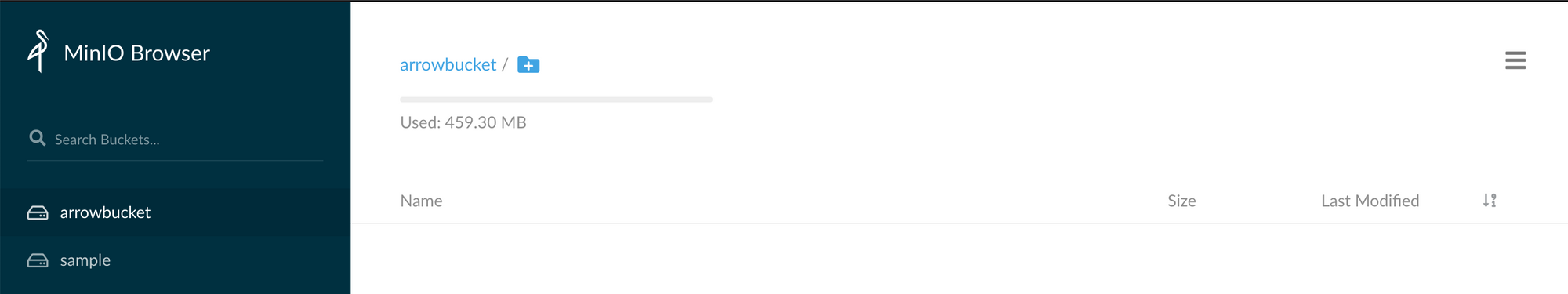 Next, start MinIO and create a bucket named "arrowbucket".