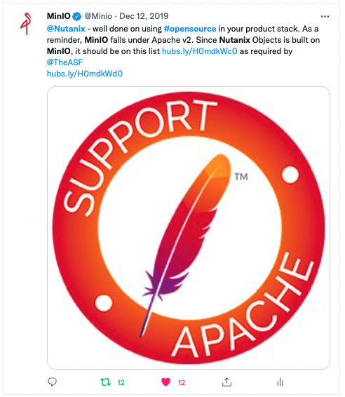 Nutanix admitted they violated MinIO’s Apache 2 license. The open source movement depends on the protection of intellectual property to ensure freedom for all the users. Nutanix’s behavior in this matter is concerning.