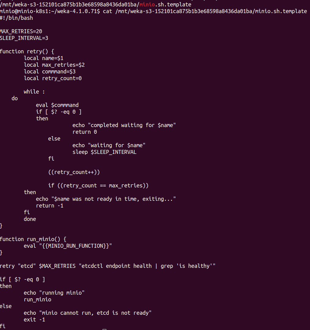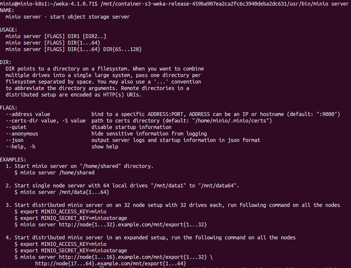 As you can see the the minio binary is located under container-s3-weka-release : Now you can run the binary on a local directory.