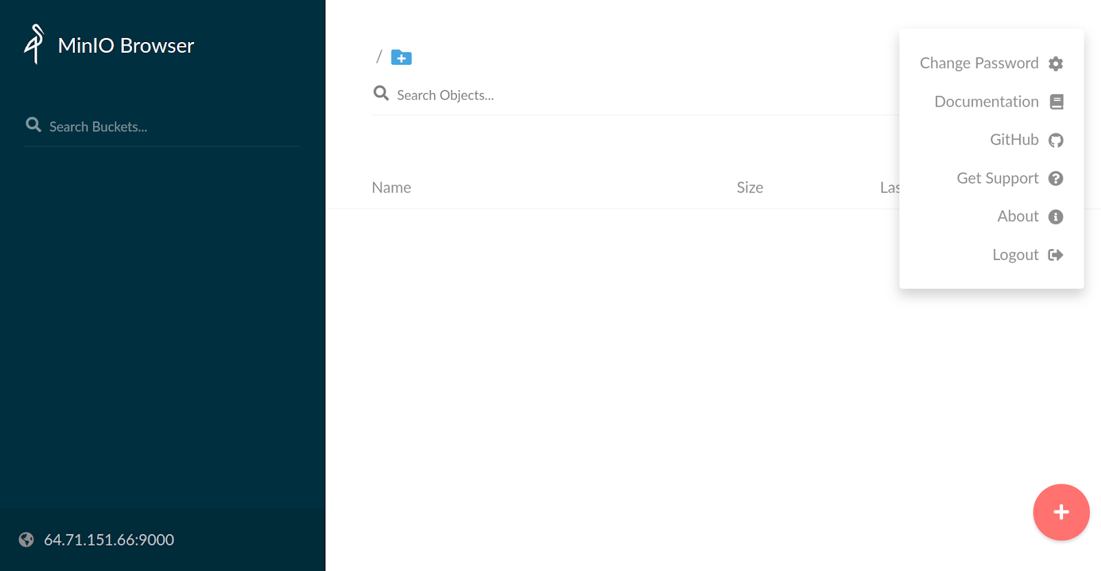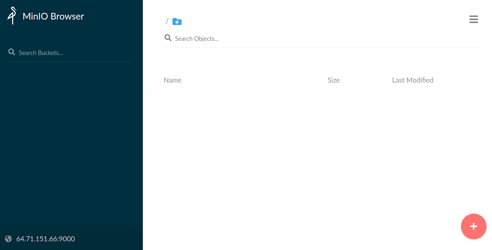 You can now visit the link at http://64.71.151.66:9000 and interact with MinIO using the object browser.